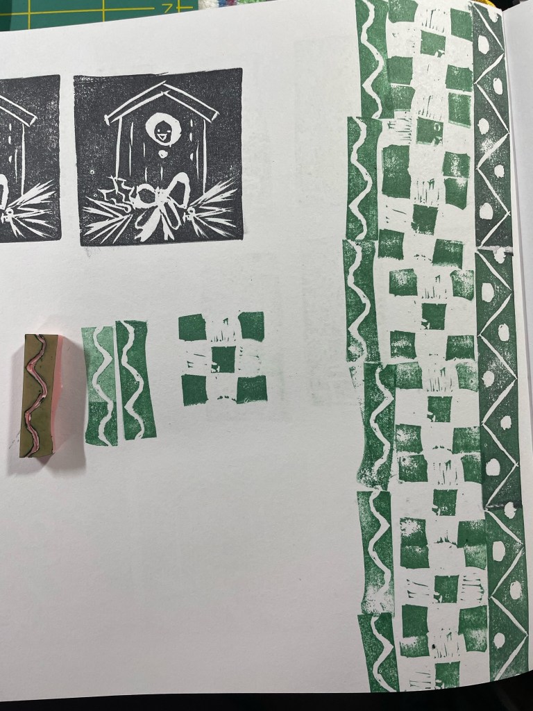 Here is today’s stamp combined with Day 16 & 17 designs. It’s fun to combine them to see what patterns I can create.