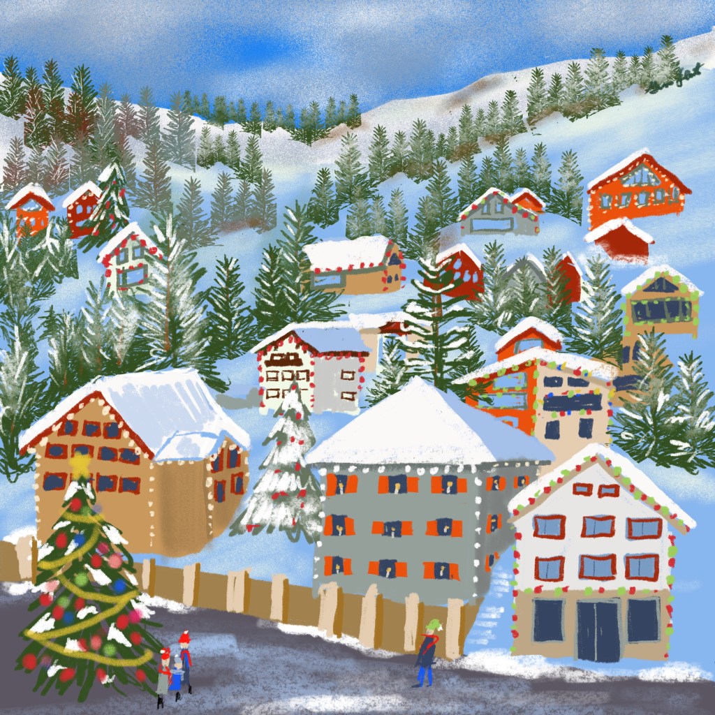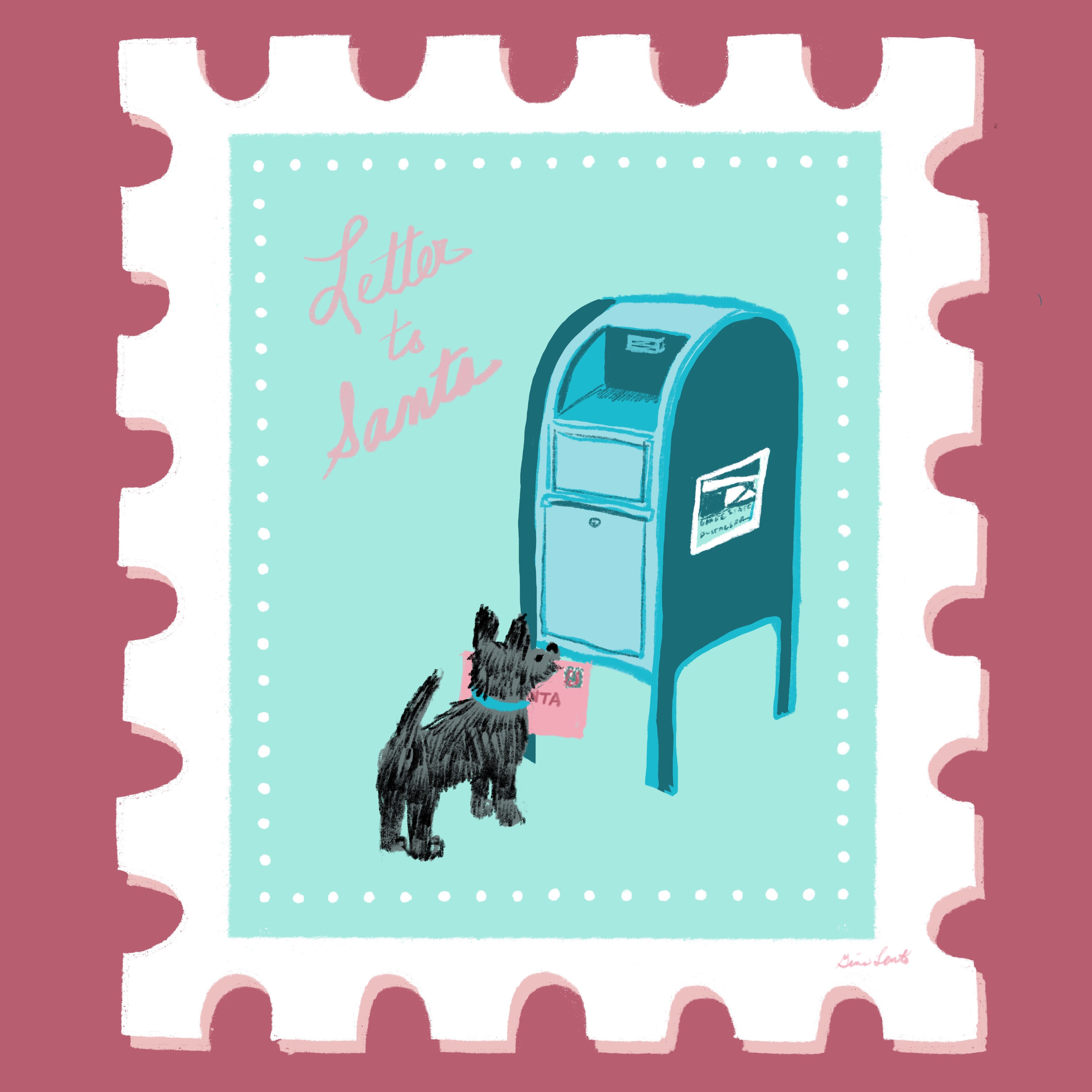 Day 7 – North Pole bound – I interpreted this as letters to Santa..featuring Teddy because Flori’s holiday group wanted to see Teddy in my illustrations