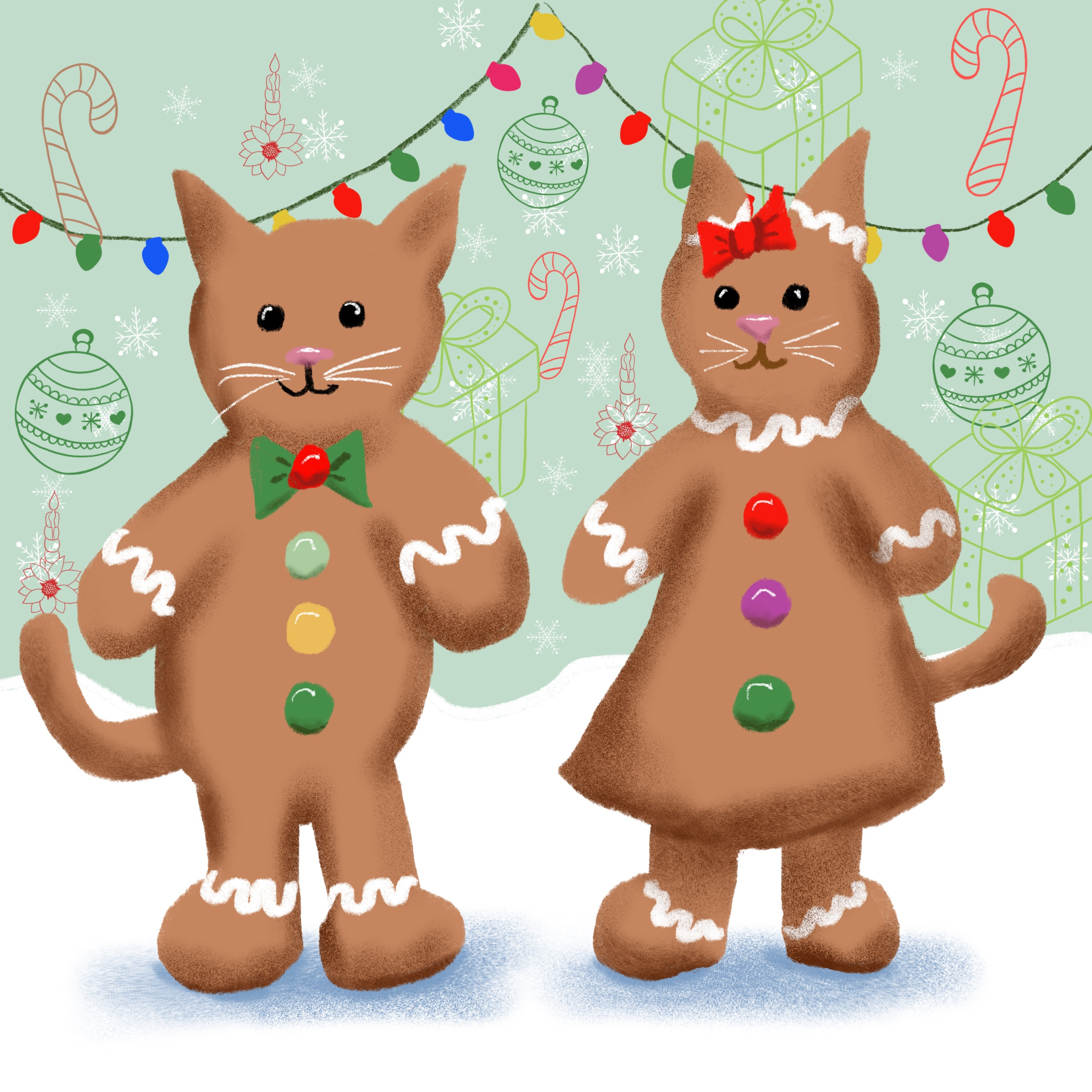 Day 11 – A gingerbread tail (tale) – I used my past characters from #drawcatsformom to create this scene.