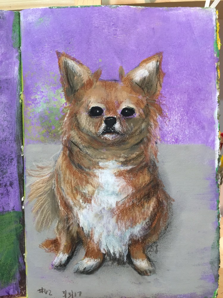 Mack is our long haired chihuahua who looks like what my husband descibes as a “fluffermuffin.” As John says, it’s Lento language…. Mack’s father is a long haired Chi and he and Chloe share the same mother, who is a smooth coated Chi…..which makes Mack look like a swiffer duster. He didn’t quite get the long silky fur that long haired Chihuahuas usually have.