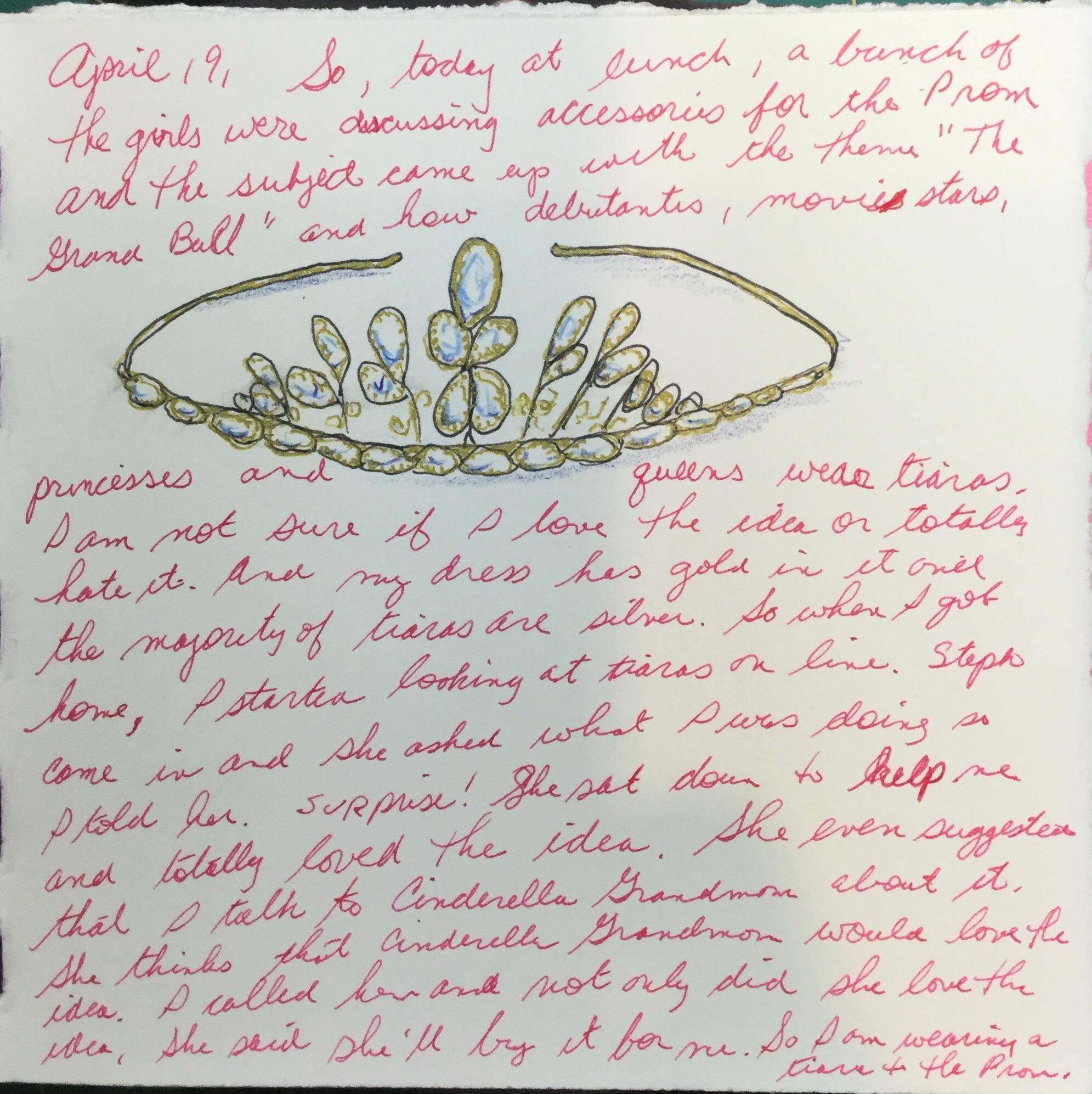 April 24, Yes, it’s finally here! Game of Thrones Season 6. And I can watch it as it comes on TV. I wasn’t permitted to watch it until I was 17. Some of my friends weren’t either so when we were finally old enough, we had Game of Thrones nights over each other’s houses to catch up on the seasons. Of course, some of us had to be “counseled” by our parents about some of the more racy episodes. Seriously?! Some of the movies and videos out there are far worse! So, today is G of T day. My grandmother (the artist) said she’ll watch it with me. Cinderella Grandma freaks out when she hears I’ve been permitted to watch it. I told her I would wear the darn shoes to Promenade. She shut up after that and gushed about the shoes.