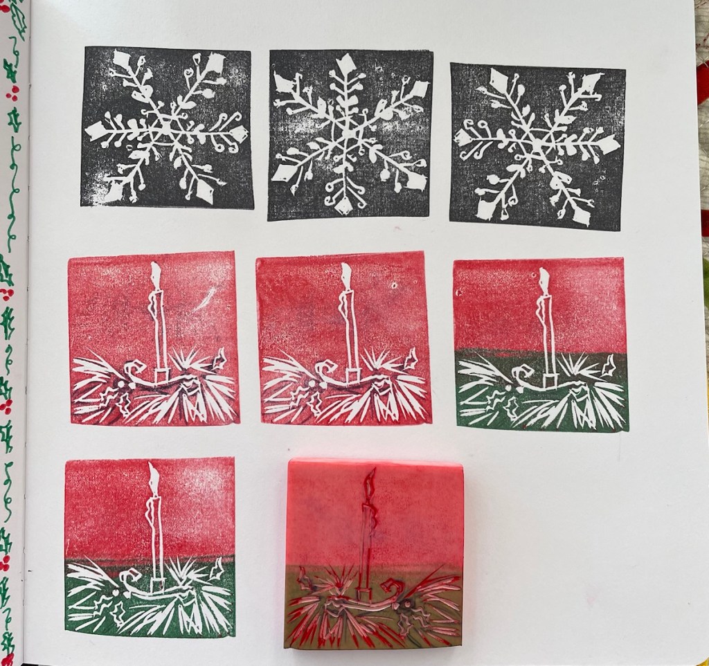 I am also really excited that I only have two more stamps to carve, too! It was a tough month compounded by the additional twist of getting sick, but alls well that ends well.