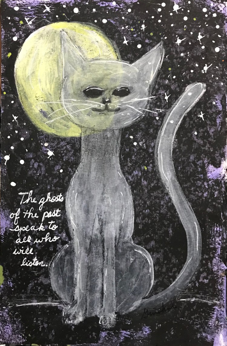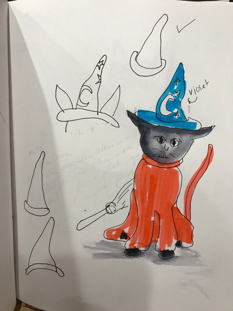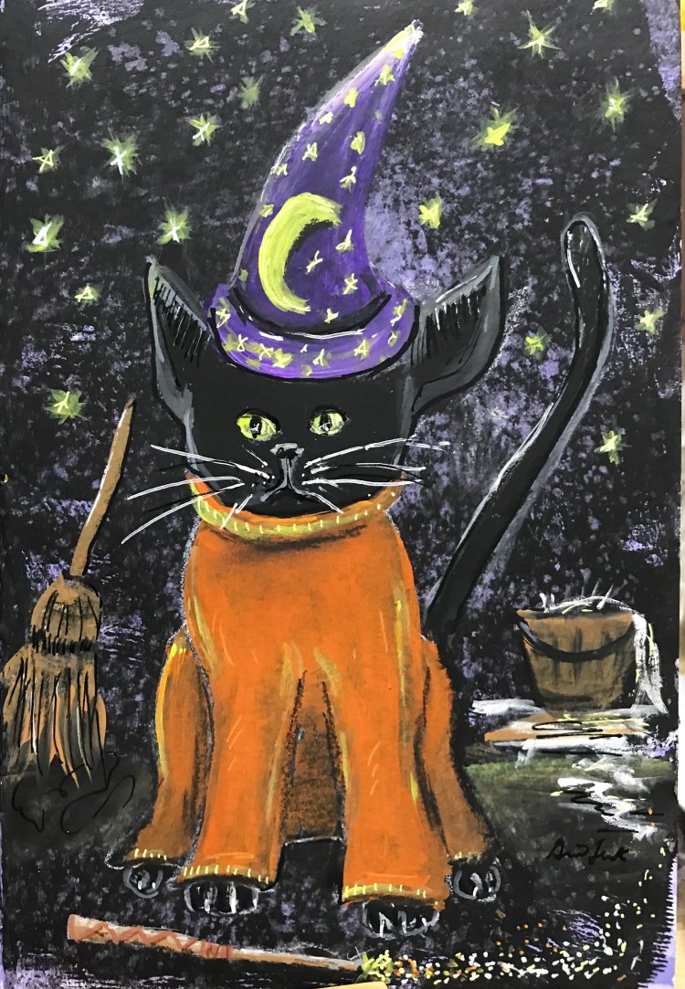 A Halloween sketchbook featuring cats wouldn’t be complete without The Shining (with Jack Nicholson). Although Stephen King disliked this adaptation of his book, it was a classic. Kitty is actually out chasing a mouse in the shed. I think the axe is a little extreme but who am I to judge?