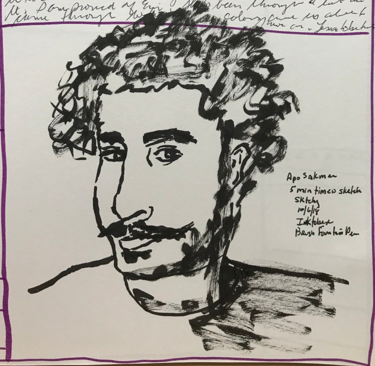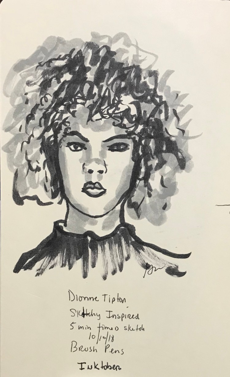 Today’s Inktober Sketch was done with a brush Fountain pen. It was a three minute timed sketch in my morning pages.