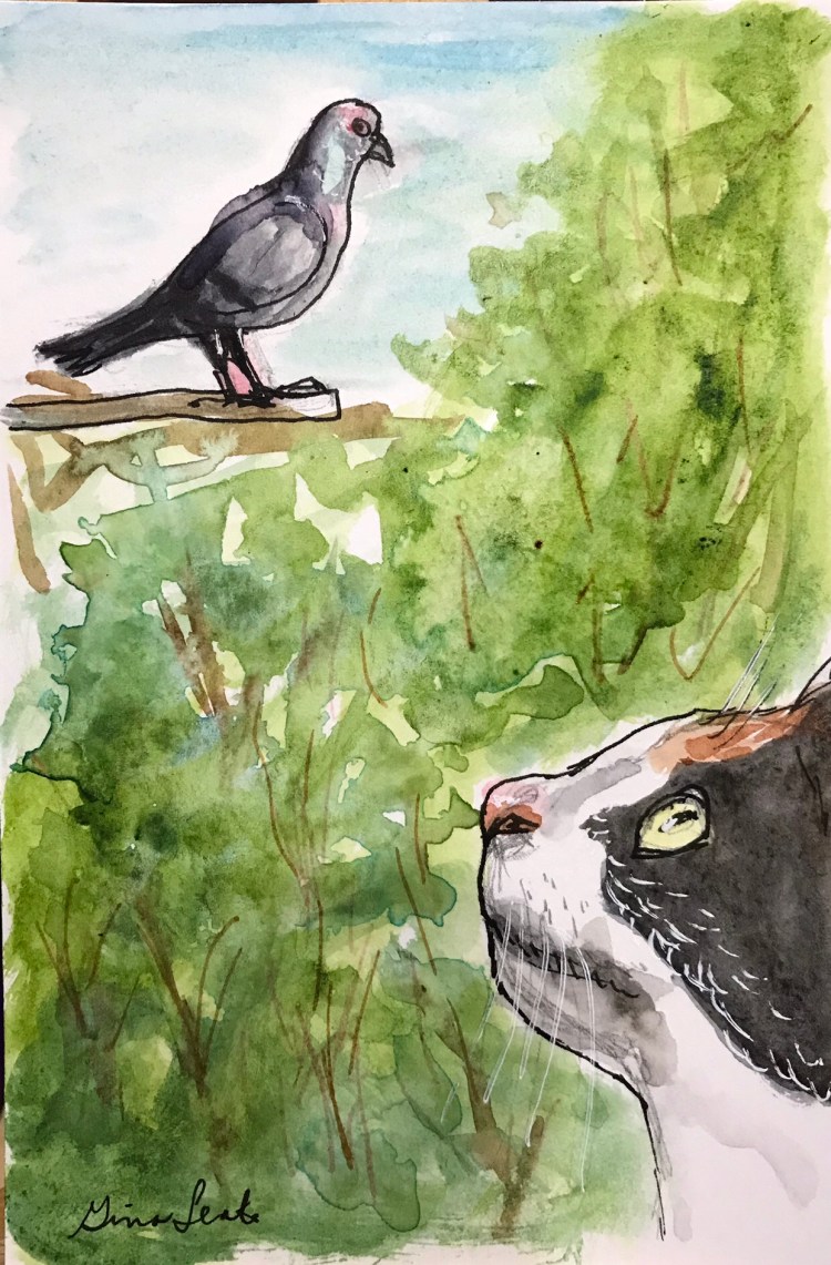 Ooops, forgot to post these two kitties yesterday…water color blobs and drips turned kitty…the idea of using random shapes is sometimes it enables you to see an angle you normally wouldn’t have thought of on your own.