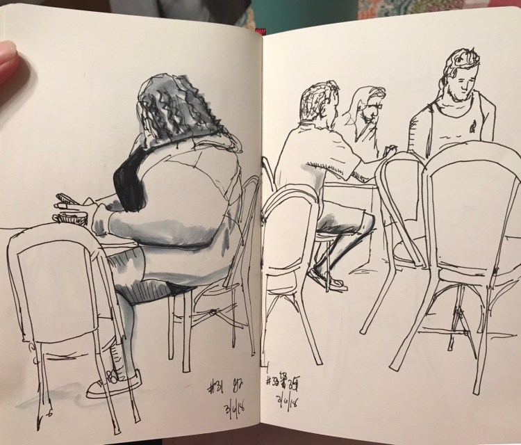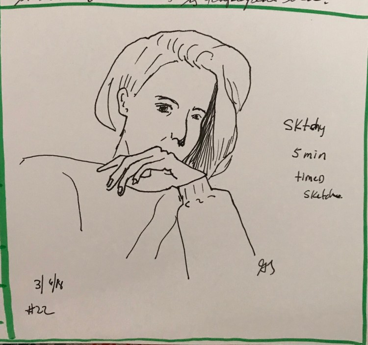 Here is a quick Tombow sketch and I updated Mack’s hat from the previous sketch to add green.
