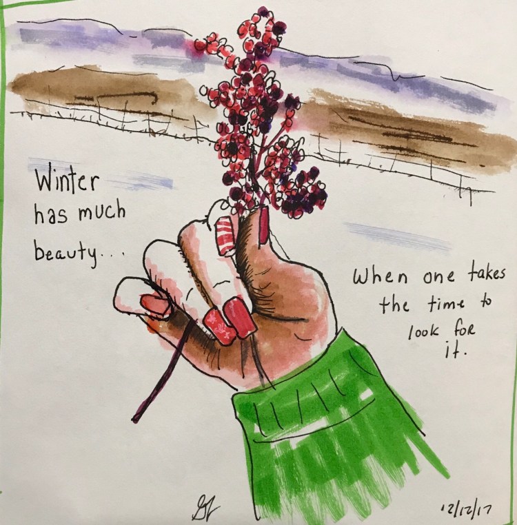 I take Carla Sonheim’s year long 365 class. It’s probably one of the best on line creative workshops out there. (Next is Sally Swindell’s Card making Workshop). Carla teaches a lot of really great creative prompts.
