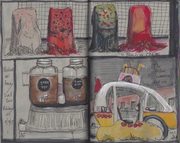 I also did a collage sketch which included a mock Yellow Submarine that can actually drive. It’s a battery powered ELF car; it’s a cross between a bike and a golf cart.