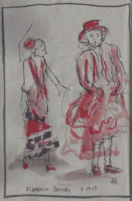 I attended the Festival del Amor last evening in Patchogue. It was a very nice event with various activities but the highlight for me was the flamenco dancers….I don’t normally have a chance to sketch them so last evening was a treat….it’s not easy to sketch moving targets so J am only posting two of the more complete sketches of the dancers.
