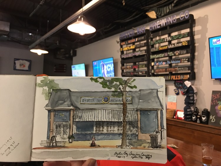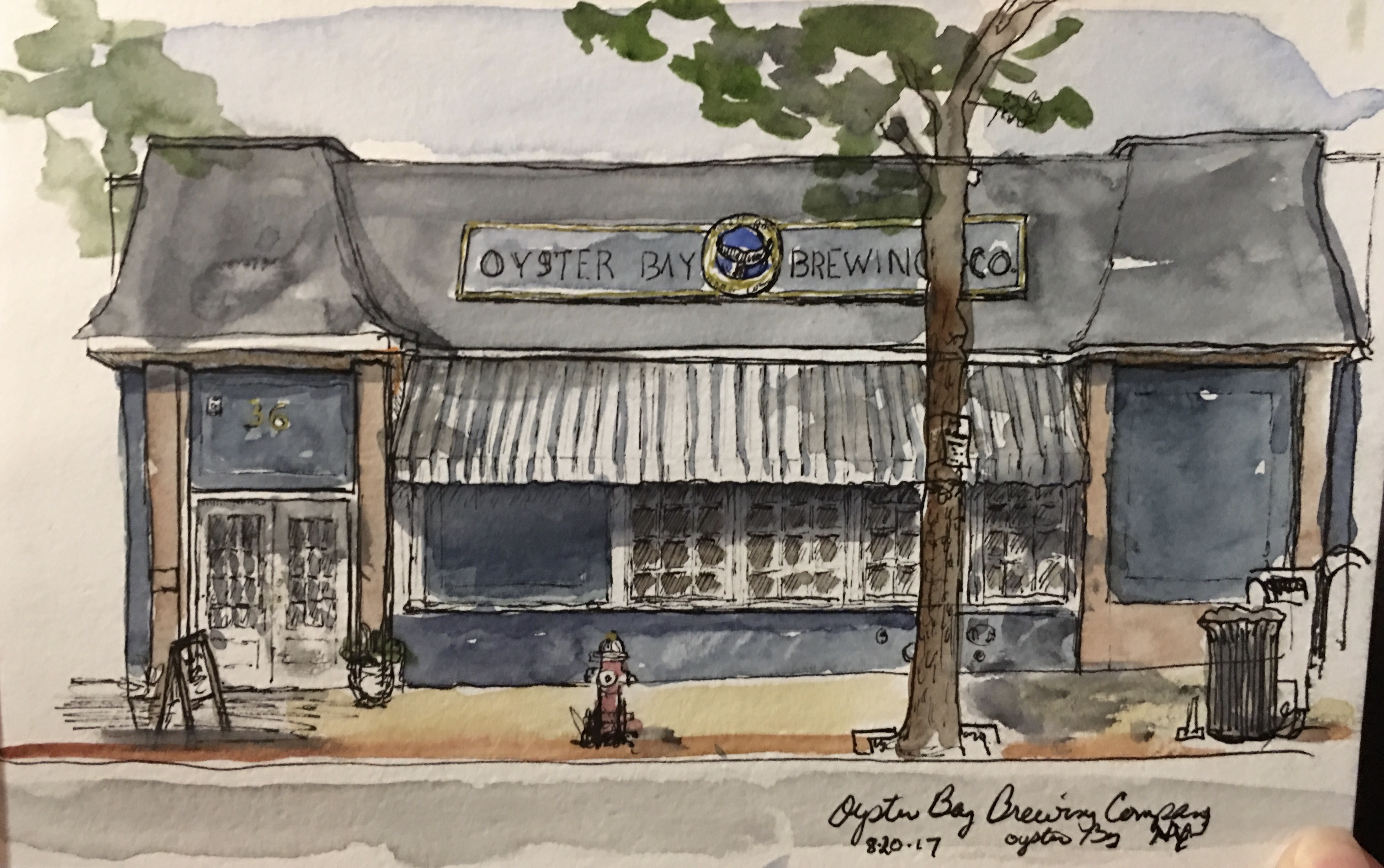 My sketch of the Oyster Bay Brewing Company has a permanent home with OB Brewing Co….