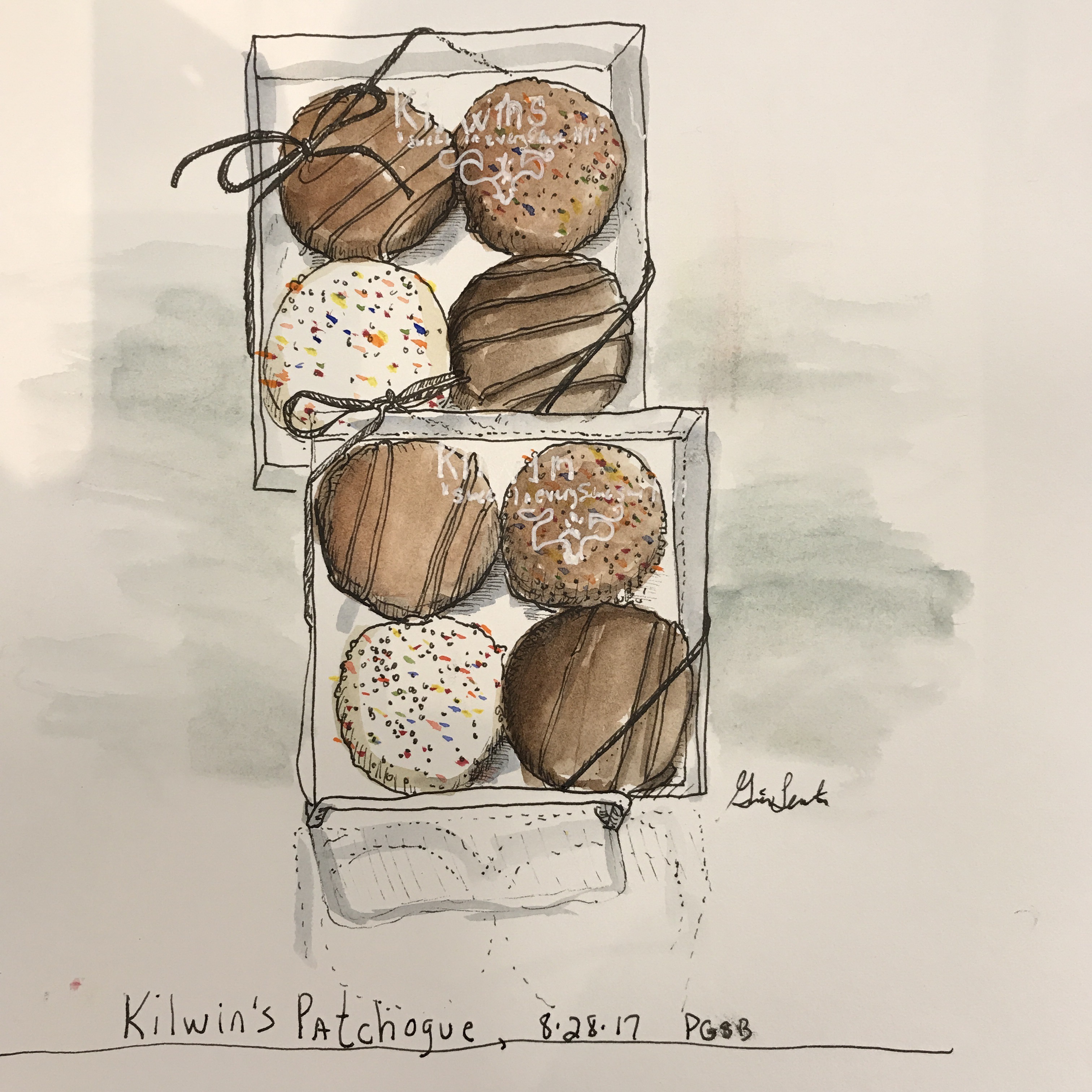 One of the Paint the Great South Bay’s mini challenges was a sketch hour at Kilwin’s of Patchogue. The owner, John, offered the PGSB artists a free ice cream in trade for a sketch in his shop. Hell yeah! I was there, John and I have been on a strict eating and exercise plan but I was taking the night off for a Kilwin’s ice cream. We had an hour to complete the sketch.